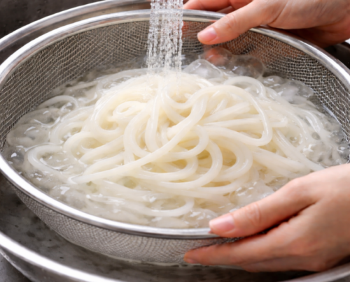 ぬめりが取れて、しっかりとしたコシとツヤが生まれ、つるっとした口当たりと程よい弾力の美味しい麺に仕上がります。